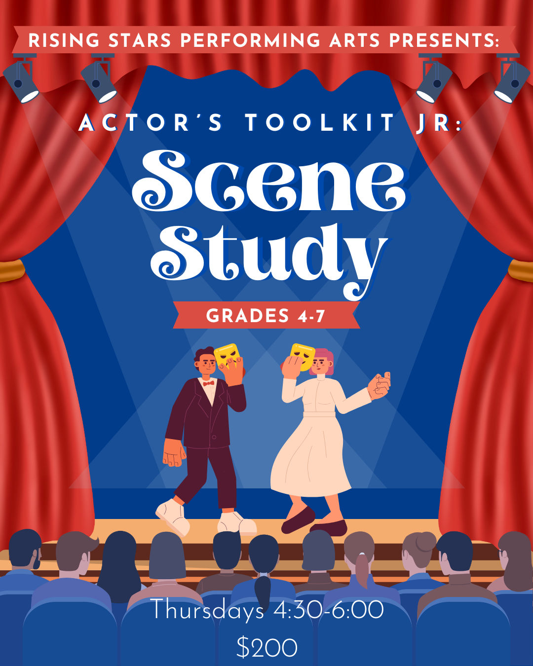 This class introduces young actors to the process of scene work and its application to performance and rehearsals. Students explore foundational exercises, script analysis, and active listening in a supportive, ensemble-based environment. Scene Study becomes a space for cooperative learning, where students develop genuine partner connection, mutual trust, and strong craft.